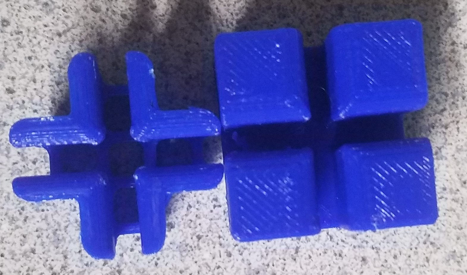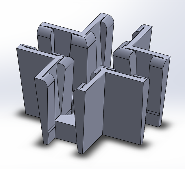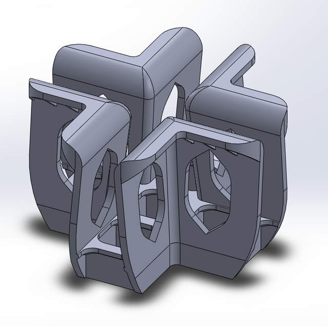 After designing the injection-molding and 3D printing models, I found a similar component COTS (Commercial Off-The-Shelf) available, used for holding together wire shelves. It required a light modification to the design, by separating the corrugated plastic boards into uniform walls.