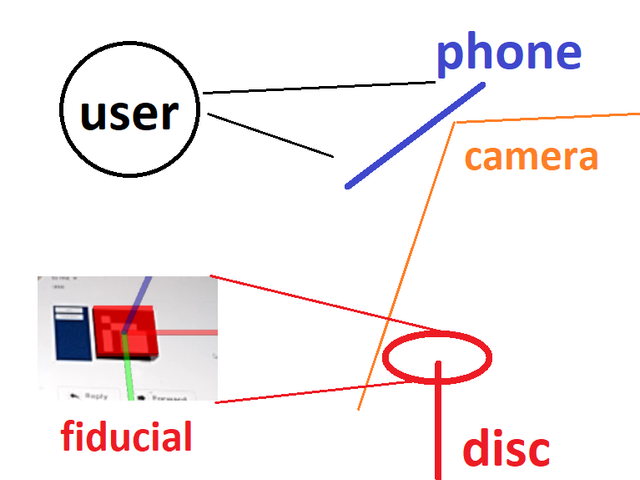 Seeking a more elegant solution, I noticed that with some deliberate placement, the disc was visible to the phone’s camera. This facilitated the use of a fiducial-based tracking solution from the smartphone, greatly simplifying the project by eliminating the need for electronic hardware development, and the associated firmware and mechanical mounting solution.